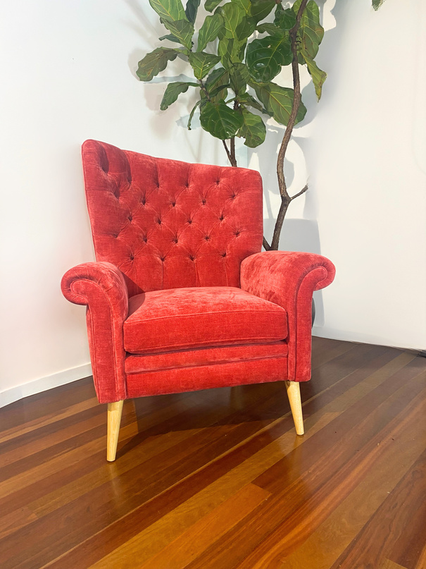 No mass production here. Small Family operation, custom building quality chairs, sofas, bedheads, ottomans to your requirements. Alter the size, choose your fabric, legs and fillings. Delivery available Australia wide. Contact us for more information .